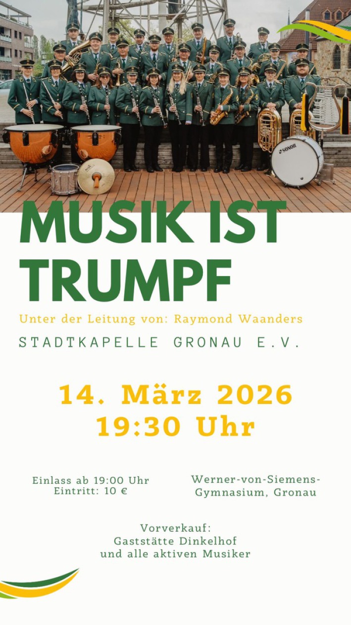 Dieses Jahr wird das Jahrskonzert Musik ist Trumpf am 14.03.2026 stattfinden.